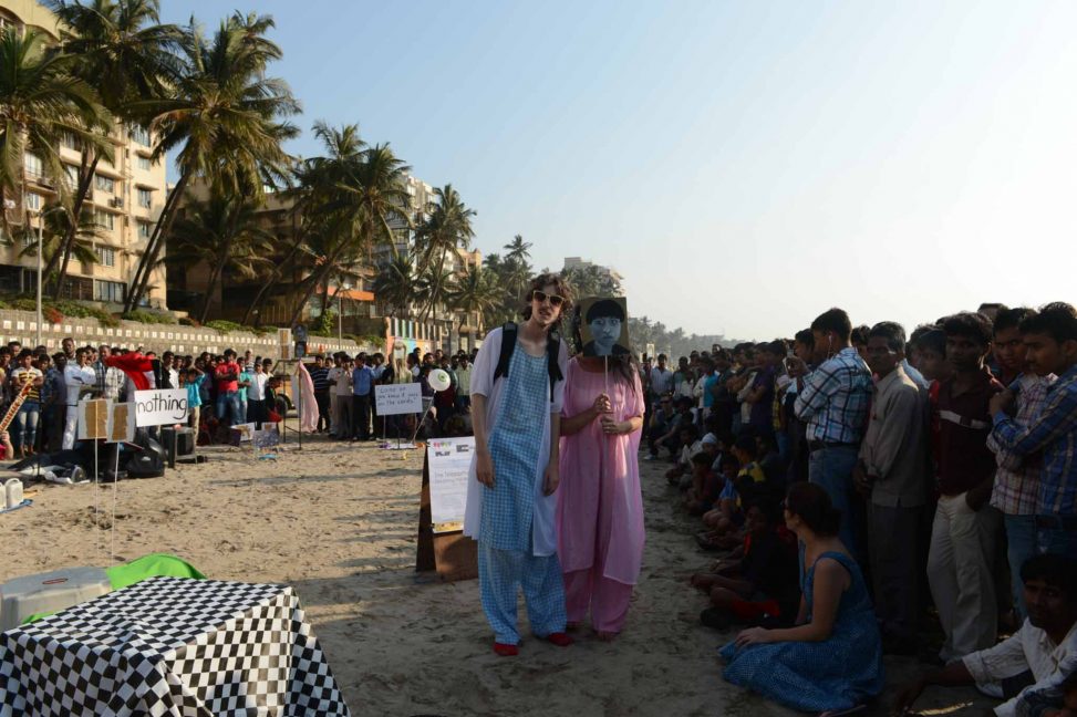 The Telepathy Project developed a process-based performance, exploring alternative routes, dream and telepathic communication. The absurdist, rambunctious and whimsical Dreaming the Arabian Sea featured Sean and Veronica acting out a series of vignettes inspired by the dreams that the pair had during their stay in India, presented at sunset on Juhu Beach, facing out to the Arabian Sea.